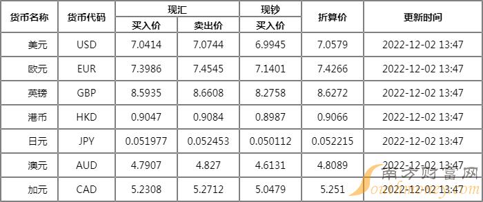 目光和蔼的海豚 邮储银行外汇牌价一览表2022年12月2日,邮储银行人民币汇率多少?下面同三江君来看看。