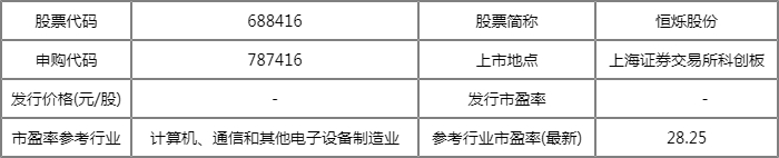 恒烁半导体(合肥)股份有限公司将于近期开启新股申购,股票简称为恒烁股份,申购代码为787416,股票代码为687416。