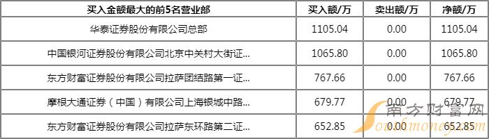 成交额:1.04亿元 合计买入:4271.12万元 合计卖出:6082.61万元 净额:-1811.50万元