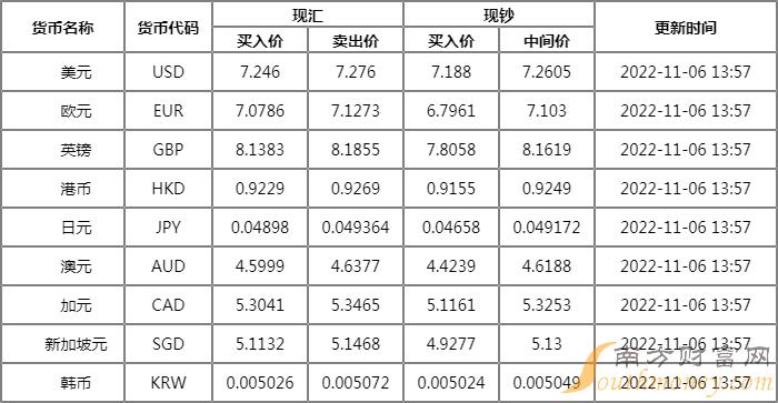 11月11日,人民币兑美元中间价报7.1907,调升515个基点。前一交易日中间价报7.2422,人民币16:30收盘价报7.2474,23:30夜盘收报7.1840。