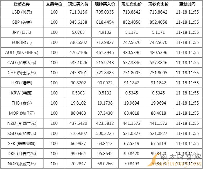 人民币对美元上一交易日收7.1291,11月18日开盘价为7.1318。人民币对美元汇率跌破7.15。截至11月18日上午10时,人民币对美元汇率报7.1541,日内下贬幅度为0.35%;人民币对美元汇率报7.1589,日内下贬幅度为0.15%。
