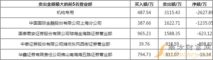 成交额:1.29亿元 合计买入:4592.45万元 合计卖出:8322.89万元 净额:-3730.44万元