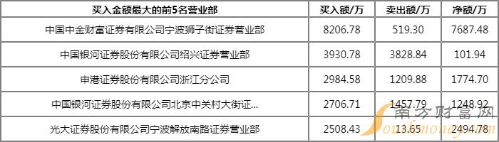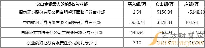 买五、卖四均为东方财富证券拉萨团结路第一证券营业部,该营业部买入918.31万元,卖出716.51万元,净买额为201.79万元。近三个月内该席位共上榜958次,实力排名第7。