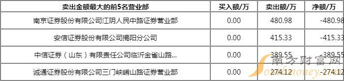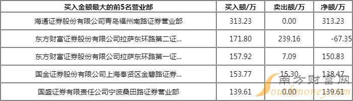 今日上榜营业部中,第一大买入营业部为海通证券股份有限公司青岛福州南路证券营业部,买入金额为313.23万元,第一大卖出营业部为南京证券股份有限公司江阴人民中路证券营业部,卖出金额为480.98万元。