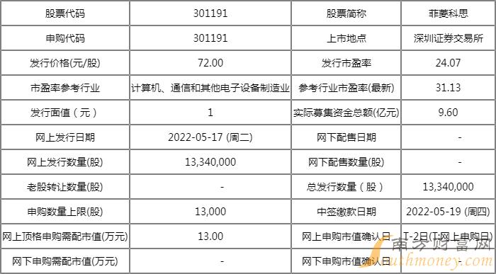 雪白细牙的围巾 菲菱科思新股发行一览 股票代码为301191,下文就随笔记君来简单的了解一下吧。