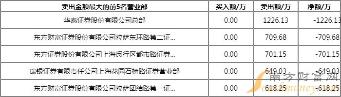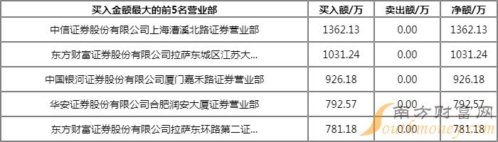 今日上榜营业部中,第一大买入营业部为中信证券股份有限公司上海漕溪北路证券营业部,买入金额为1362.13万元,第一大卖出营业部为华泰证券股份有限公司总部,卖出金额为1226.13万元。