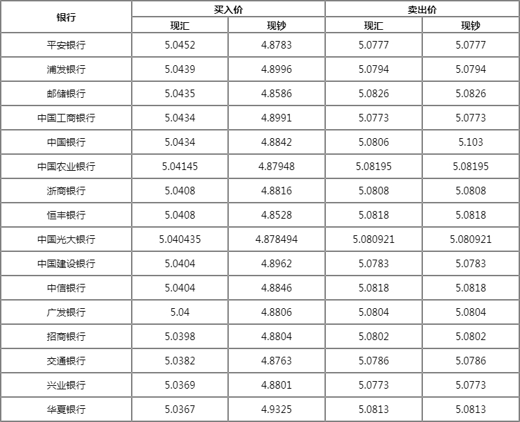 注:市场行情变化较快,以上汇率行情数据仅供参考,请以当时最新行情为准。