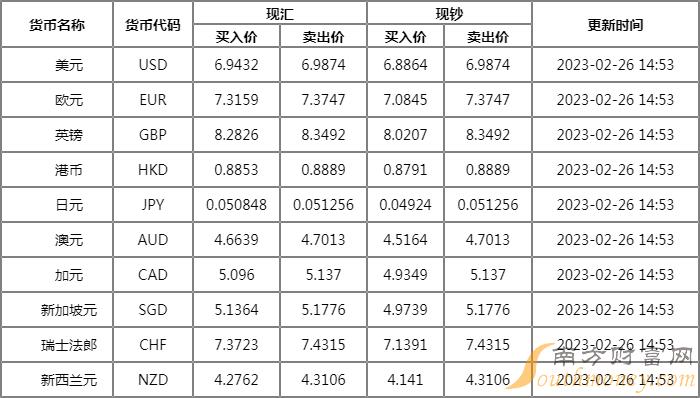 堵钥匙扣 周末招商银行外汇牌价表,2月26日招商银行人民币汇率多少?下面同道财君整理
