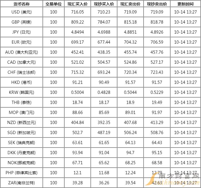 10月27日,人民币对美元中间价上调68个基点,报7.1570。人民币16:30收盘价报7.1825,23:30夜盘收报7.1710。