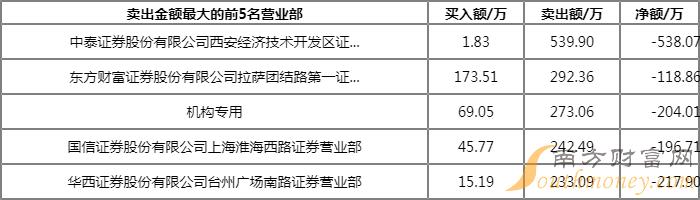 成交额:4706.35万元 合计买入:2167.53万元 合计卖出:2538.82万元 净额:-371.28万元