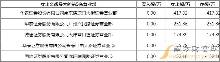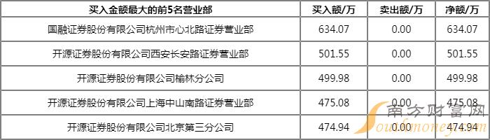 今日上榜营业部中,第一大买入营业部为国融证券股份有限公司杭州市心北路证券营业部,买入金额为634.07万元,第一大卖出营业部为华泰证券股份有限公司南京清凉门大街证券营业部,卖出金额为417.32万元。