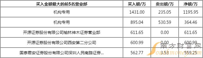 具体来看,机构买入2542.24万元,卖出1809.25万元,合计净买入732.99万元。此外,开源证券榆林神木证券营业部、开源证券西安第二分公司分别买入611.65万元、600.99万元;中泰证券上海花园石桥路证券营业部、中国国际金融上海分公司分别卖出2113.17万元、656.63万元。