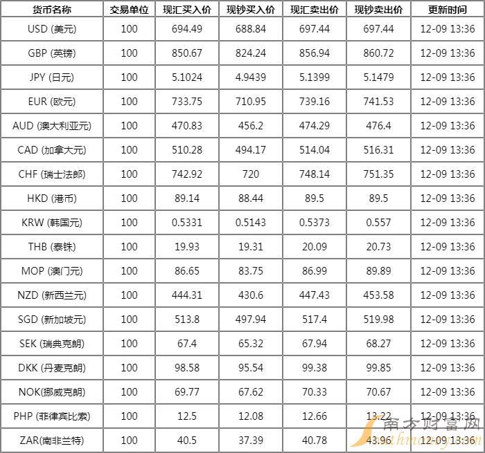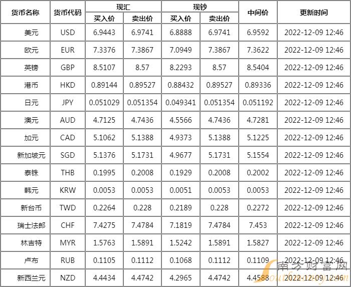 傅光 2022年12月9日中国银行外汇牌价表 ,中行人民币汇率多少?下面同微聊君来看看。