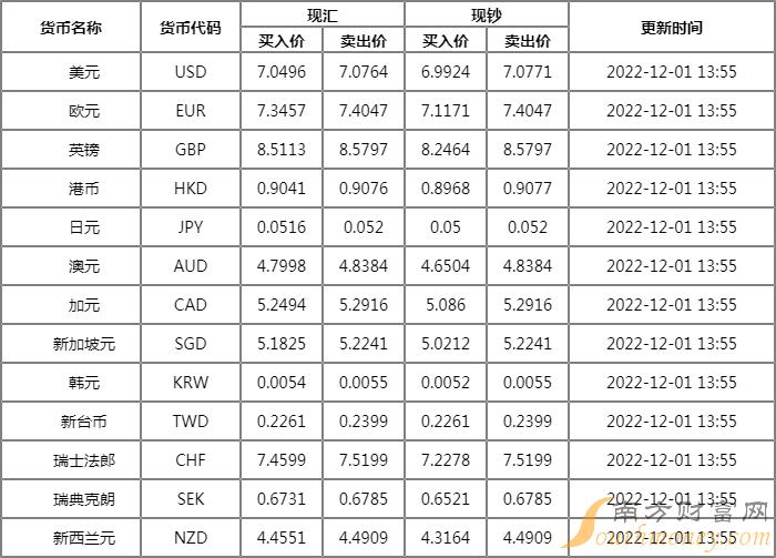 傅光 12月1日兴业银行外汇牌价表 兴业银行人民币对美元汇率是多少?下面同蝴蝶君来看看。