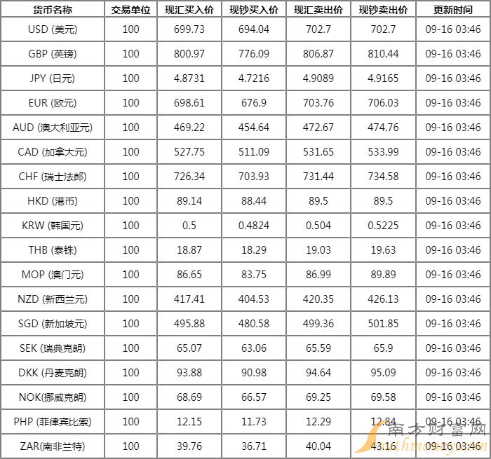 傅光 中国银行外汇牌价查询9月16日 人民币汇率是多少?下面同大眼君来看看。