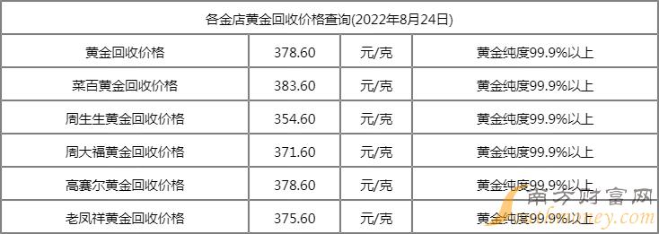 | 老凤祥黄金回收价格 | 388.90 | 元/克 | 黄金纯度99.0%以上 |