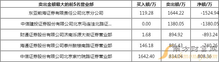 成交额:4387.56万元 合计买入:1586.15万元 合计卖出:2801.41万元 净额:-1215.27万元