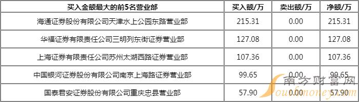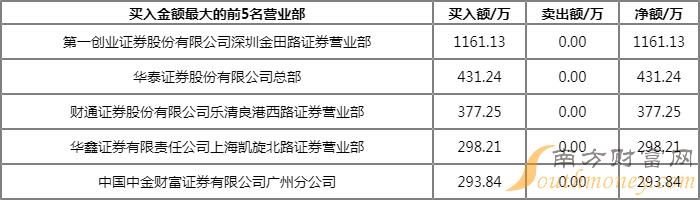 4月6日上榜原因:有价格涨跌幅限制的日收盘价格涨幅偏离值达到7%的前五只证券。威帝股份股票上榜的前五大买卖营业部合计成交2307.76万元,占该股当天成交总金额的比例为38.7%,其中,买入成交额为1661.39万元,占该股当天买入成交额的比例为27.86%,卖出成交额为646.37万元,占该股当天买出成交额的比例为10.84%,合计净买入1015.03万元,买一主买,成功率37.89%。