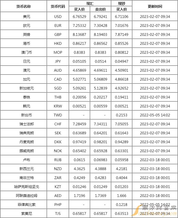 碧眼突出的蓉 2023年2月7日农业银行外汇牌价查询 农业银行人民币汇率是多少?人民币汇率走势如何?下面同火车君来了解一下。