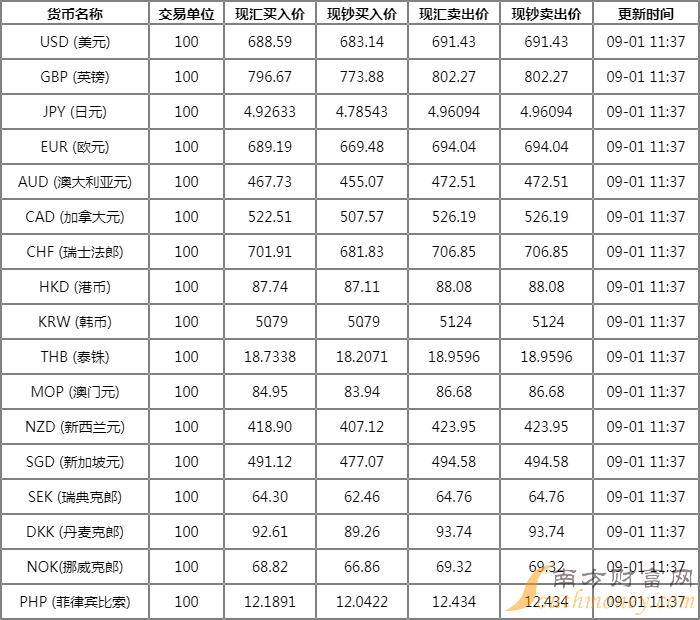 邪眉邪眼的香菇 浦发银行外汇牌价表 9月1日浦发银行人民币对美元汇率多少?下面同火车君来看看。