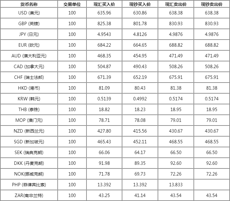 注:市场行情变化较快,以上汇率行情数据仅供参考,请以当时最新行情为准。