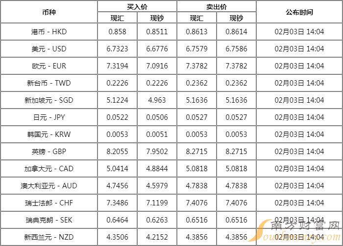 剑眉凤眼的红豆 兴业银行外汇牌价表 2月3日兴业银行人民币汇率是多少?下面同李才君来看看。