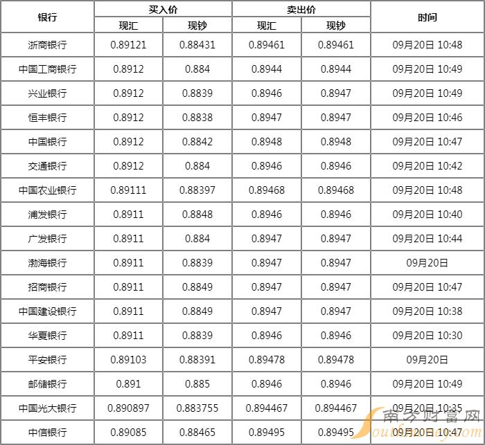 剑眉凤眼的红豆 港元对人民币的兑换价是多少 9月20日港元汇率走势图,下面同小释来看看。