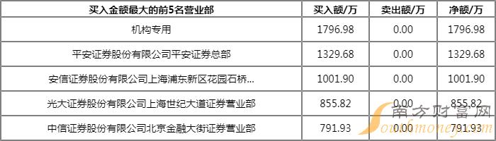 龙虎榜数据显示,今日买五为机构席位,该席位净买入277.93万元,占该股今日总成交额的0.87%。