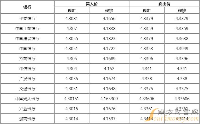昨收4.3256最低4.3087