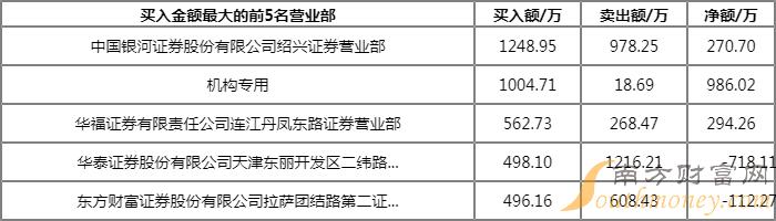 成交额:1.07亿元 合计买入:4111.38万元 合计卖出:6569.87万元 净额:-2458.49万元