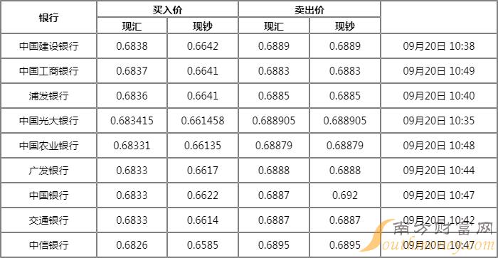 今日银行澳元汇率查询
