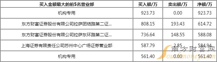 上榜的前五大买卖营业部合计成交5263.73万元,其中,买入成交额为3753.33万元,卖出成交额为1510.40万元,合计净买入2242.93万元。