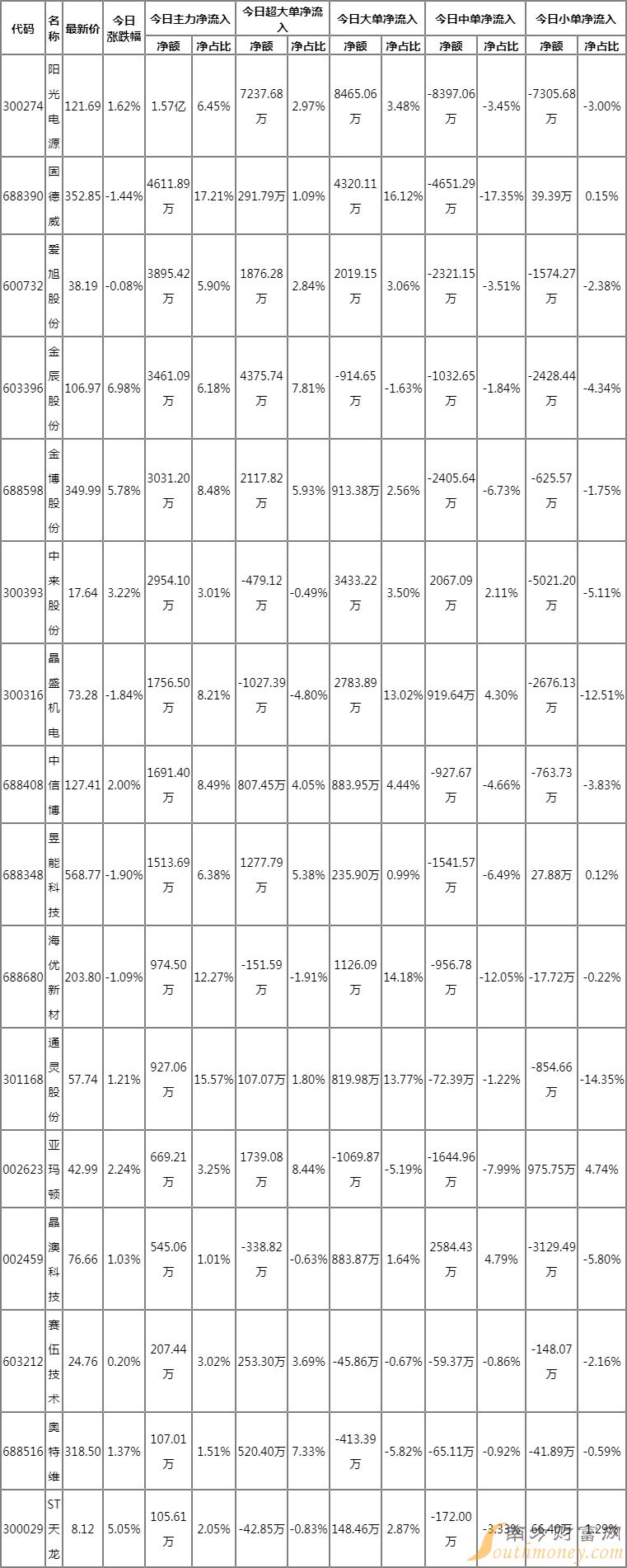 今日超大单净流入:-4.1954亿超大单净比:-2.40%
