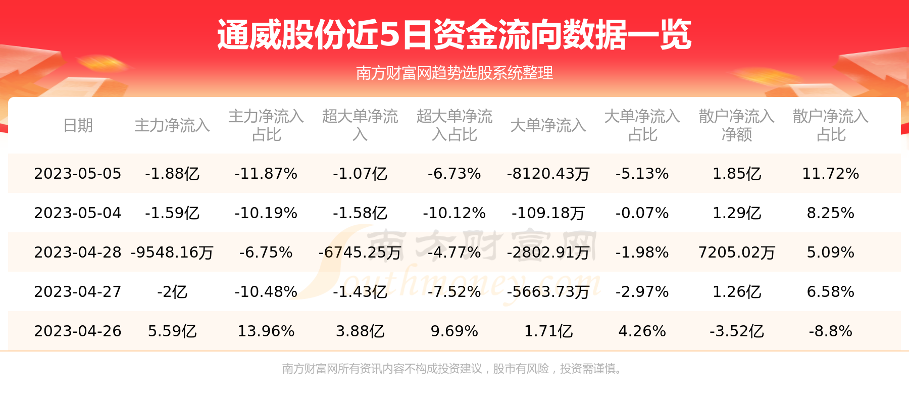 近5日资金流向一览见下表:
