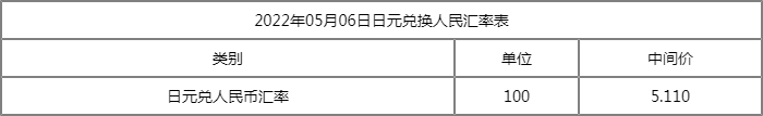 1日元=0.05110人民币