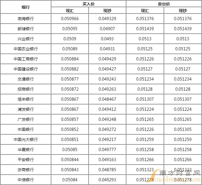 结汇最优:渤海 汇率: 0.0509661000日元现汇可结汇为50.97人民币