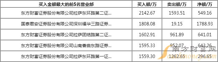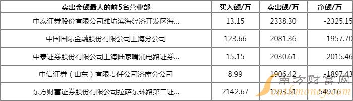 成交额:2.20亿元 合计买入:8869.25万元 合计卖出:1.31亿元 净额:-4276.73万元