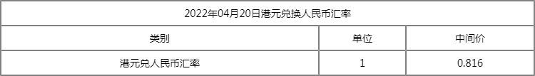 1港元=0.8156人民币