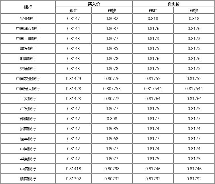 结汇最优:兴业 汇率: 0.81471000港币现汇可结汇为814.70人民币