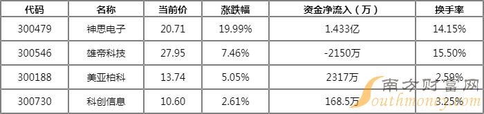 截至今日15:00该板块表现较差的前3名个股为:赛为智能(300044)跌幅3.85%, 成交金额8437.93万元,换手3.85%;广电运通(002152)跌幅3.72%, 成交金额2.85亿元,换手1.29%;欧比特(300053)跌幅2.6%, 成交金额7112.26万元,换手1.4%。