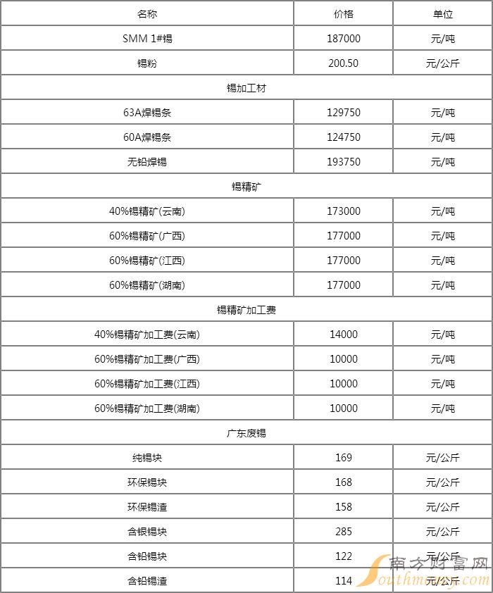 2023年3月14日今日锡价格多少钱一吨,如下: