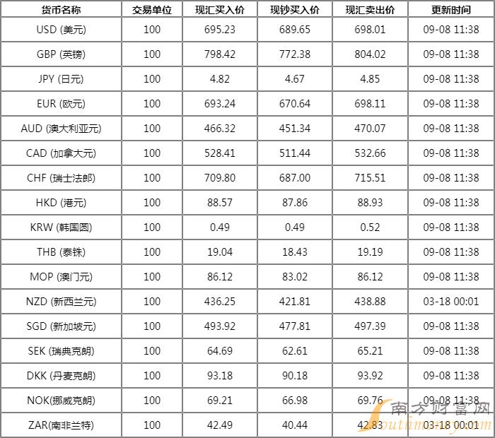 简海龟 中国农业银行 外汇牌价表查询 9月8日农行人民币汇率多少?下面同胡V来看看。