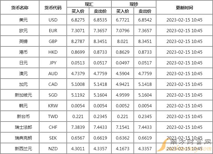 目光明亮的轮 最新2023年2月15日兴业银行外汇牌价表 兴业银行人民币汇率如何?下面同微聊君来看看。