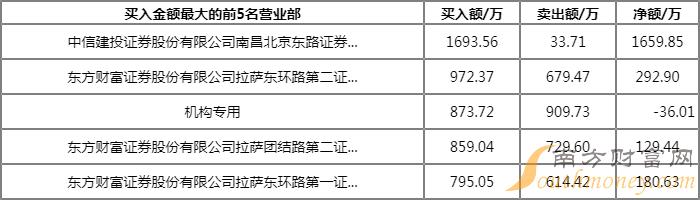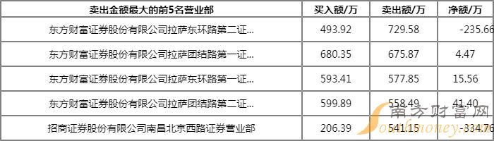 榜单上出现了5家实力营业部的身影,分别位列买一、买三、卖一、卖二、卖三,合计买入3398.25万元,卖出6728.40万元,净额为-3330.15万元。