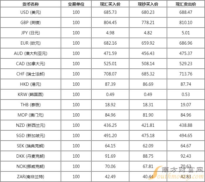 今日银行日元汇率查询