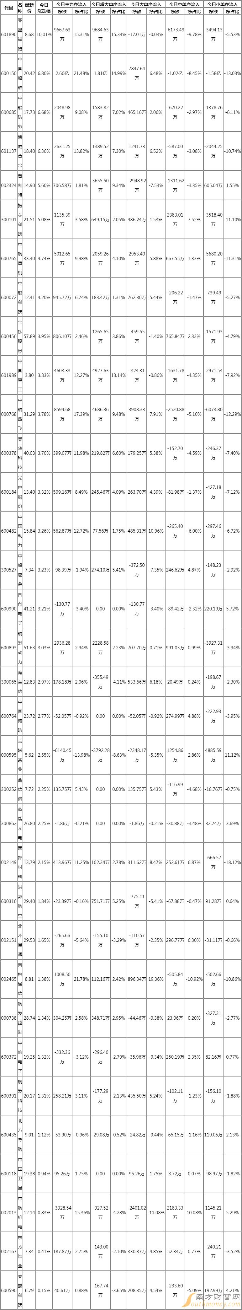 航母概念资金流向明细