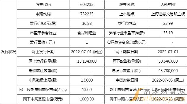目光明亮的轮 天新药业上市了吗 新股代码为603235,下文就同搜罗君来简单的了解一下吧。