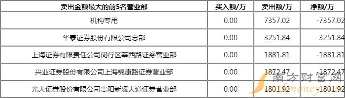 奥翔药业(603229)龙虎榜明细5月31日:日跌幅偏离值达7%的证券
