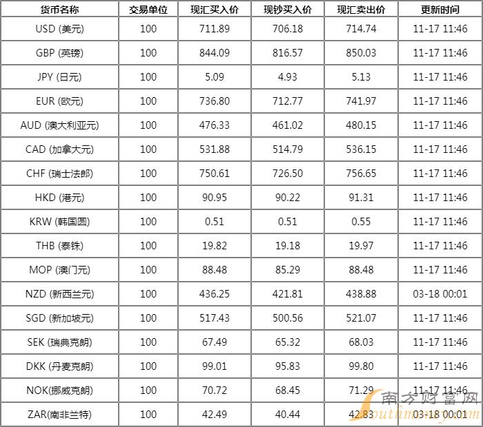 乌黑眸子的舒 今日瑞郎兑人民币汇率中间价新走势(2022年11月15日)