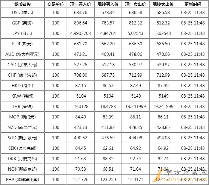 乌黑眸子的舒 浦发银行外汇牌价表8月25日 浦发银行人民币汇率多少?下面同汇财君来看看。